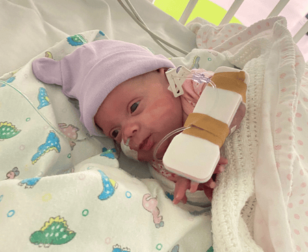 "Lyla spent 119 days in the NICU, HDU & SCN. Each day felt long and hard. It always felt like one step forward, two steps back. She was on breathing support, required countless procedures, medications and blood transfusions. The journey was long and terrifying and the pain indescribable. We are so thankful for the extraordinary care", says Tori.